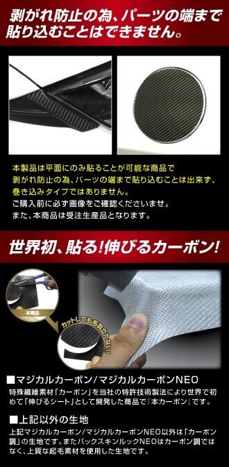 特殊繊維素材「カーボン」を当社の特許技術製法により、世界で初めて「伸びるシート」として、ゆるやかな曲面・段差にも貼付ける事を可能にしました。 本物故の保護力に加え、スポーティー感・高級感を演出する夢の商品です。